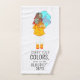 Mädchen mit Regenschirm in Wind Positive Quote Handtuch Set. Dieses zeichnend zeigt ein im Wind stehendes Mädchen, ihr Rücken kehrte zum Betrachter um. Sie hält einen Regenschirm. Das Haar des Mädchens wird im Wind geblasen. Der positive Text sagt "Trage deine Farben auch an den wolkigsten Tagen".