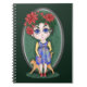 Mädchen mit roter Katze und Apfel. Chibi Style. Notizblock