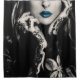 Wildes Mädchen mit Blume tatto und blaue Lippenschwarzweiss-Kunst