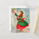 Mädchen mit Weihnachtskranz an der Tür Postkarte