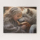 Ein 16x20 kleines Mädchen mit einem weißen Wolf-Jigsaw-Puzzle für Kinder oder Erwachsene