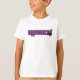 Lila Text liest Motokid, mit einer schwarzen Silhouette eines kleinen Mädchens auf einem Schmutzfahrrad, das einen Wheelie am eigentlichen Ende tut. Spaßschmutz-Fahrradkleid für Kinder. Dieser Entwurf ist auch für Jungen verfügbar.