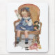 Die Vintage Illustration der Kinder der nähenden Transportwagen eines Mädchens beim Sitzen in einem Stuhl.