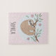 Dieses niedliche und moderne Puzzle Design besticht durch ein hübsches, handgezeichnet Schlafdoodle mit Blume und Blätter. Dieses hübsche rosa Design bietet auch einen Platz, wo Sie Ihren Mädchennamen hinzufügen können. Das perfekte Dschungelgeschenk für jeden Faulenzer!