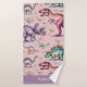 Dieses hübsche Dinosaurier-Handtuchdesign ist mit einem niedlichen rosa und lila Dinosaurier-Muster und einem Platz zum Hinzufügen des Mädchennamens ausgestattet.