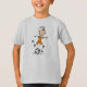 Ein Mädchen-Strichmännchen in einer orange Fußballuniform tritt den Fußbalball auf kundengerechten Mädchenfußball T - Shirts, Karten, Tassen, Taschentaschen und anderen Fußballkleider- und -geschenkeinzelteilen.