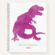 Mädchen Pink Lila Dinosaurier Wasserfarbe T-Rex Kinder Spiral Notebook. Front hat einen großen T-Rex Dinosaurier mit Platz für Namen und Jahr oder anderen Text. Zurück ist ein Muster von Dinosauriern, weißer Hintergrund. www.SamAnnDesigns.com