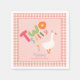 Dieses niedliche und skurrile Mädchen 2. Geburtstag Serviette Design verfügt über eine alberne Gans mit einem rosa Party Hut, mit einem Gingham-Rahmen, und kann mit Ihrem Mädchennamen personalisiert werden. Das perfekte Bauerndesign für den zweiten Geburtstag Ihres Kleinen!