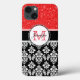 Mädchen, Rot, Glitzer Black Damask Personalisiert Case-Mate iPhone Hülle