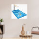 Ein Mädchen, das in einem Swimmingpool mit Taucherbrett schwimmt. Dieses Design sieht wirklich effektiv aus auf diesem Poster