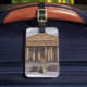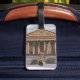 Mädchen sitzt vor Pantheon in Rom. Gepäckanhänger