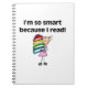 Niedliches Strichmännchenmädchen mit einem Stapel der Bücher entwerfen, der fördert, Kinder mit Text herein zu lesen, der "mich sind so intelligent liest, weil ich! lese".