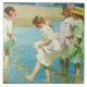 Dieses Design zeigt ein Gemälde des amerikanischen Impressionisten Edward Henry Potthast (1857-1927). Es zeigt eine Gruppe von vier Mädchen, die in feiner Kleidung gekleidet sind, während sie durch Pfützen Wasser am Strand laufen. Sie genießen das warme Sommerwetter. Ein Mädchen hebt sich das Bein, während sie sich die Füße im Wasser kühlt, während andere stehend sind oder im Wasser laufen. Es ist ein schönes Bild der unschuldigen Freuden der Kindheit. Das Originalwerk wurde 1910 von E.H. Potthast gemalt.