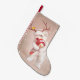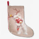 Mädchen umarmender Hund in Rentierfäusten Kleiner Weihnachtsstrumpf