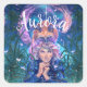 Mädchen und der magicfox-Sternennacht im Wald Quadratischer Aufkleber