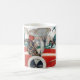 Mädchen und ein Mops Hund in einem roten Auto Kaffeetasse