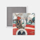 Mädchen und ein Mops Hund in einem roten Auto Magnet