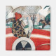 Dieses Design zeigt ein Gemälde der dänischen Künstlerin Gerda Wegener (1886-1940). Es zeigt eine modische Dame, die einen stilvollen Mantel trägt und in einem roten Sportwagen Fahrhandschuhe trägt. Neben ihr im Vintagen Automobil ist ein weißer Mops. Die Frau und ihr Haustierhund starren gerade nach vorn. Im Hintergrund stehen stilisierte Bäume, und auch ein Paar Pferdefahrer kommen vorbei. Das Kunstwerk ist im Art-Deko-Stil bemalt und wurde ursprünglich 1927 hergestellt.