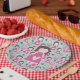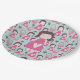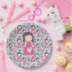 Mädchen und Handtaschen gestalten Sticker, Ornamente, Karten, Kissen, Wanduhren, Flaschenöffner, Schneidebretter, Notebooks, Armbanduhren, Wallets, Trockenrasenbretter und viele andere Dinge mit einem niedlichen Design, das Mädchen in rosa Herzkleider, rosa und weiße Polka gepunktete Handtaschen, tiefe lila Sterne und einen blau Zickzack Streifen Hintergrund.