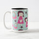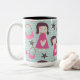 Niedliches, lustiges, skurriles, farbenfrohes Design auf Gegenständen wie Brieftaschen, Uhren, Karten, Aufkleber, Zugschnürbeutel, kompakten Spiegeln, Schlüsselketten, Notebooks, Büchern, Bindemitteln, Kissen und vielem mehr. Kleine Mädchen mit rosa Herzkleider, mit rosa und weißem Polka gepunkteten Handtaschen, dunklen lila Sternen und einem blauen Zickzack Streifen-Hintergrund.
