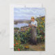 Dieses Design zeigt ein Gemälde des amerikanischen Künstlers Daniel Ridgway Knight (1839-1924). Es zeigt ein schönes Mädchen, das eine Taube auf der Hand hält. Der Vogel ist ihr Haustier. Sie Liebe das Tier ganz klar tief. Sie ist stehend in einem Garten mit vielen schönen Blume wie Sonnenblumen. Der Garten steht ganz oben auf einem hohen. Im Tal unten ist ein See umgeben von einigen Häusern. Das Originalwerk wurde 1895 gemalt.