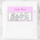 Ein individueller Aufkleber mit Platz für den Namen Ihres Kindes in einem Script-Schriftart auf einem rosa Hintergrund mit Vintagen Kinderbuchkunst einer Schwester und eines Bruders, das kleine Mädchen spielt mit ihrer Puppe und dem Jungen mit seinem Teddybär, alle halten Hände und tragen Kleiderhut. Klicken Sie auf Anpassen, um Schriftart oder Hintergrundfarben zu ändern, und rette sogar Ihr eigenes Design für später.