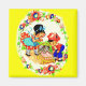 Mädchen und Junge und Kätzchen und Welpen Magnet