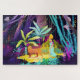 Ein dunkelhaariges Mädchen in einer schönen Sari mit einem Krug Wasser auf dem Kopf geht durch den Regenwald neben einem zahmen Leopard, umgeben von Palmen, Büschen, bunten Blume und tropischen Bäumen. Die zauberhafte und schillernde Atmosphäre der Illustration bringt uns zu den alten, bekannten Märchen. Ein wunderbares Rätsel für die ganze Familie, einen Abend mit Lieben zu verbringen.
