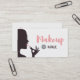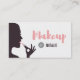 Diese Geschäftskarte hat die Silhouette einer Dame, die auf korallenroten rosa Lippenstift sich setzt. Bürsten Sie Beschriftungstypographie-Schriftart des Wortes "Make-up". Personifizieren Sie leicht mit Ihren Geschäftsdetails mit der Schablone. Modisch, zeitgenössisch, modern und glatt, das für freiberuflich tätige Maskenbildner groß ist!