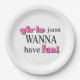 Set von acht 9" Tellern mit dem Titel des unvergesslichen 80er-Melodie "Girls Just Wanna Have Fun". in hellrosa und schwarzem Buchstaben. Siehe dazu passende Süßigkeiten, Espressotasse, Kolben, Tasse, Krug, Schuss Glas, Teekanne und Untersetzer. Sehen Sie sich die gesamte Kollektion von Tubular 80er Plate im NAHRUNGSMITTEL/BEV an. | Abschnitt Geschirr.