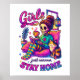 Lebhaftes, buntes Design mit einem weiblichen Skelett, das in einem bequemen Stuhl mit ihrer Katze sitzt, ein Buch liest und eine Tasse Kaffee hält. Der farbenfrohe Text lautet: "Mädchen wollen nur Zuhause bleibe". Dieses Design ist auf einer Vielzahl von Produkten erhältlich.