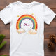 Der personalisierte T - Shirt der Girls besticht durch einen hübschen, wasserfarbenen Regenbogen mit leuchtenden goldenen Sternen und flauschigen Wolken.