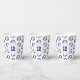 Diese Volleyball-Geburtstagsparty-Tassen mit mehreren kleinen stylisierten blauen, grauen und weißen Volleybällen, die in einem einfachen Tropfenmuster angeordnet sind - Text auf einer weißen Kreisgrafik kann angepasst werden, derzeit die Nummer 12, um das Alter eines Kindes zu repräsentieren, umgeben von den Worten "Glücklicher Geburtstag" - von katz_d_zynes