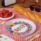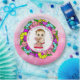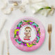Girl's Baby Dusche, Caucasian Baby mit Teddy Bear Paper Plate.Pink lila und viele hübsche bunte Blume.