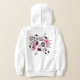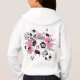 Der Fußball-Hoodie dieses niedlichen Mädchens zeichnet sich durch eine "Explosion" verschiedener Fußballbälle und rosa, graue und weiße Sternformen aus - ein winziges, weißes Polka-Punktmuster überdeckt den grauen Stern - die sich nach Namen, Monogramm und Jersey-Nummer des Athleten richten - das Design ist vorne auf der Kapuze, kann aber auf der Rückseite verschoben oder kopiert werden - von katz_d_d_zynes