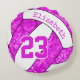 Dieses speziell für Mädchen gefertigte Volleyballkissen ist mit einer rosa-weißen Volleyballgrafik versehen, die mit einem gürtelblumengeschmückten kaleidoskopischen Muster, das mit den rosa Volleyballplatten vermischt ist, und einem abstrakten, mit den weißen Paneelen vermischten wirbelnden Muster versehen ist.