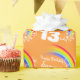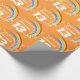 Geburtstags-Packpapier in einem bunten Regenbogen mit Sternen und orange Himmel entwerfen. Personifizieren Sie dieses Mädchengeburtstagspapier mit Ihrem eigenen Namen und Alter 10 bis 19. Liest z.Z. alles- Gute zum Geburtstagsommer 13 heute. Vervollkommnen Sie für die Verpackung eines 13. Geburtstagsgeschenks der speziellen Jugendlichen. Einzigartig entworfen durch Sarah Trett.