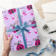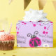 Geburtstagsverpackungspapier in niedlichen lila und rosa Mädchen, die Marienkäfer/Marienkäfer und Herzen fliegen, entwerfen. Personifizieren Sie dieses girlie Geburtstagspapier mit Ihrem eigenen Namen und Alter. Liest z.Z. alles Gute zum Geburtstag Hannah 8 heute. Einzigartig entworfen durch Sarah Trett.