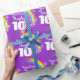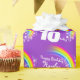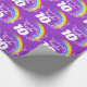 Geburtstagsverpackungspapier in einem bunten Regenbogen mit Sternen und lila Himmelentwurf. Personifizieren Sie dieses Mädchengeburtstagspapier mit Ihrem eigenen Namen und Alter 10 bis 19. Liest z.Z. alles Gute zum Geburtstag Haylee 10 heute. Vervollkommnen Sie für die Verpackung eines speziellen zehnten Geburtstagsgeschenks. Einzigartig entworfen durch Sarah Trett.