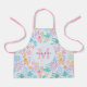 Süße und mädchenhafte Kinderschürze. Mit pastellrosa wasserbezogenen Illustrationen, einschließlich einer Gummiente, Gummistiefel, Regenbogen, Blasen, Gießkanne und Blumen, mit Platz, um den Namen und die Initialen Ihres Mädchens hinzuzufügen. Das perfekte moderne und wunderliche Geschenk für jeden angehenden Koch oder Künstler.