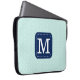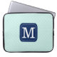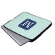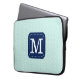 Stilvolle Laptop-Hülle mit individuellem Monogramm auf mintenblauem Hintergrund.
