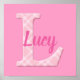 Mädchenname mit Buchstabe L initiale. Kariertes, rosa Muster drucken. Dekoratives Plakat für Mädchenzimmer. Text kann bearbeitet werden, um dieses Poster einzigartig zu machen.