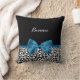 Persönlich, indem Sie den Namen Ihres Teenagers in dieses trendige schwarz-weiße leopardenfarbene Printmuster mit quadratischem Kissen und einem klassischen Kobalt-blauen Band in einem niedlichen gürtelförmigen Bogen. Flachbild, nicht echtes Band.