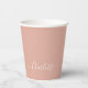 Personalisierte staubige rosa benutzerdefinierte Skriptnamen Text monogram solide schlichte Farbe gürlich elegante elegante elegant staubig rosa und weiß Text Party Papier Becher. Anpassen, personalisieren Sie es mit Namen, Zitat, Phrasen oder Text. Vollständig anpassbarer weißer Skripttext, staubrosa schlichter Hintergrund. Vorder- und Rückseite des Bechers mit vollständig anpassbarem Text, können Sie jede Seite mit einem anderen Namen, ideal für Paare. Ideal für Hochzeiten, Verlobungen, Brautpartys, Geburtstage etc.