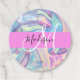 Girly pink, aqua und türkis holografisch irisierenden Monogramm Name und erste Gunst Tags. Individuelle Name und Monogramm sind in einem handgeschriebenen, eleganten Skript mit rosa Hintergrund geschrieben. Ein perfektes Geburtstag- oder Weihnachtsgeschenk!