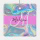 Mädchenrosa Holografisch Iridescent Monogram Name Keramikornament