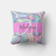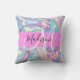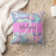Girly pink, aqua und türkis holografisch irisierenden Monogramm Name und erste Kopfkissen zu werfen. Individuelle Name und Monogramm sind in einem handgeschriebenen, eleganten Skript mit rosa Hintergrund geschrieben. Ein perfektes Geburtstag- oder Weihnachtsgeschenk!