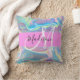 Girly pink, peach und aqua holografisch irisierenden Monogramm Name und erste Wurfkissen. Individuelle Name und Monogramm sind in einem handgeschriebenen, eleganten Skript mit rosa Hintergrund geschrieben. Ein perfektes Geburtstag- oder Weihnachtsgeschenk!