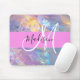 Mädchenrosa Holografisch Iridescent Monogram Name Mousepad