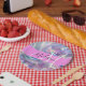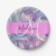 Mädchenrosa Holografisch Iridescent Monogram Name Pappteller